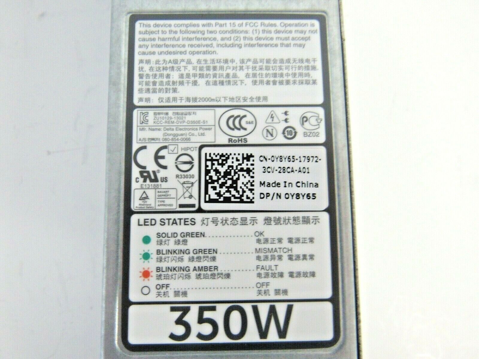 Fuente Poder Dell Y8Y65 9WR03 P7GV4 PowerEdge R320 R420 350W Usado Garantia 12 Meses Descripción $130.00 Agregar