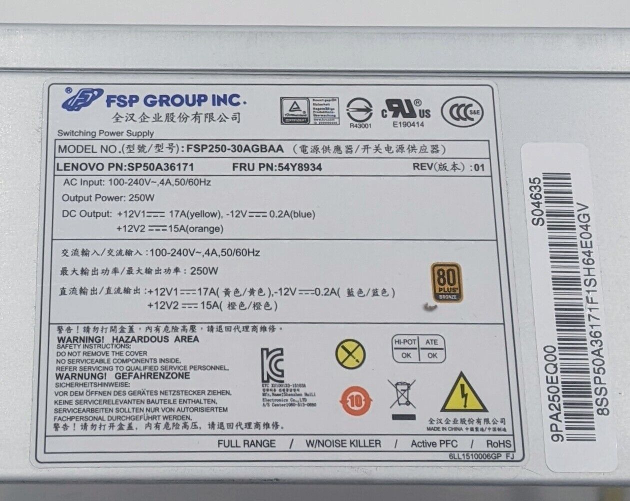 Fuente de Poder Lenovo Thinkserver TS150 ST50 250W PCE026 PCH016 54Y8934 Retirado de Equipo en uso Garantia 12 Meses Descripción $111.00 Agregar