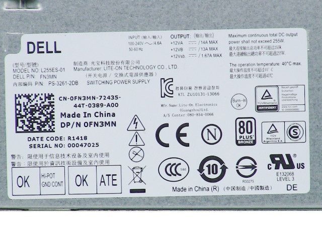 Fuente Dell Optiplex 3020 7020 9020 SFF PSU 255W NT1XP V9MVK FN3MN - Retirado de equipo en Uso Descripción $59.00 $88.00 Agregar